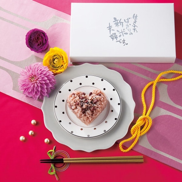 お祝いごとに欠かせないお赤飯の引き出物です。炊飯器にお米を入れ水を加えて炊くだけで簡単にふっくらお赤飯が炊き上がります。お米は国産米を使用しています。