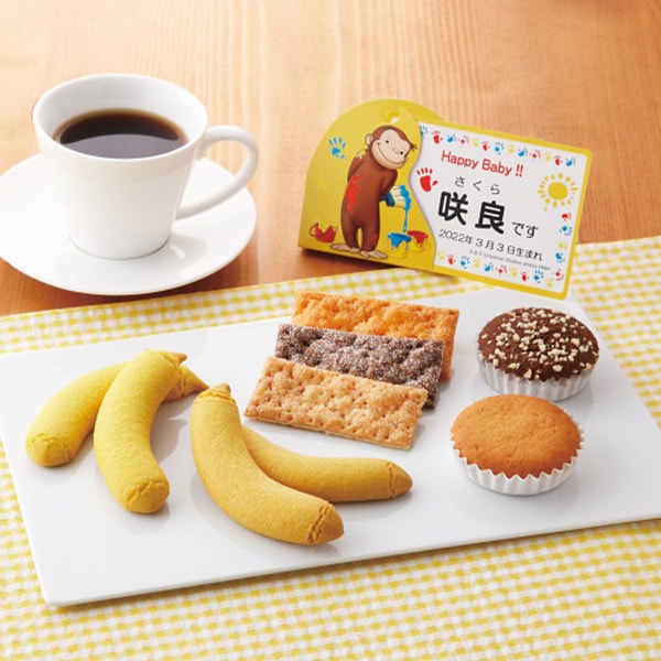 【出産お名入れ】おさるのジョージ ハッピースイーツセット(お名入れ) ペイント CGN-25N ◆ 【一個からでも注文OK】