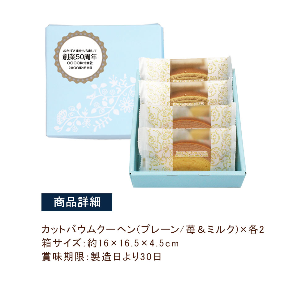 ●商品内容:カットバームクーヘンプレーン×2、苺ミルク×2