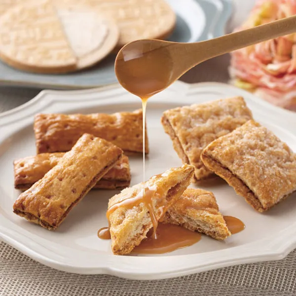 一口で甘さ広がる、キャラメル香るゴーフレット&パイで奏でる美味しさを届けるサクサク香ばしい贈り物