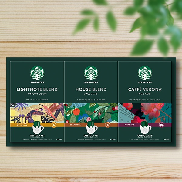 ●箱:約164×319×87mm●現品:スターバックス オリガミ パーソナルドリップ コーヒー ハウス ブレンド9g×4P×1・スターバックス オリガミ パーソナルドリップ コーヒー カフェ ベロナ9g×4P×1・スターバックス オリガミ パーソナルドリップ コーヒー ライトノートブレンド9g×4P×1