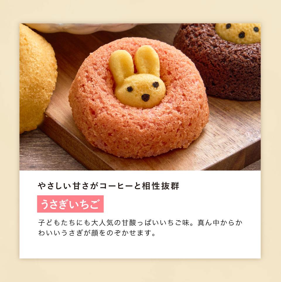 ●小さな森のドーナツ(くまプレーン・うさぎいちご・くまチョコ)/賞味期限:製造日より100日【卵,乳,小麦】