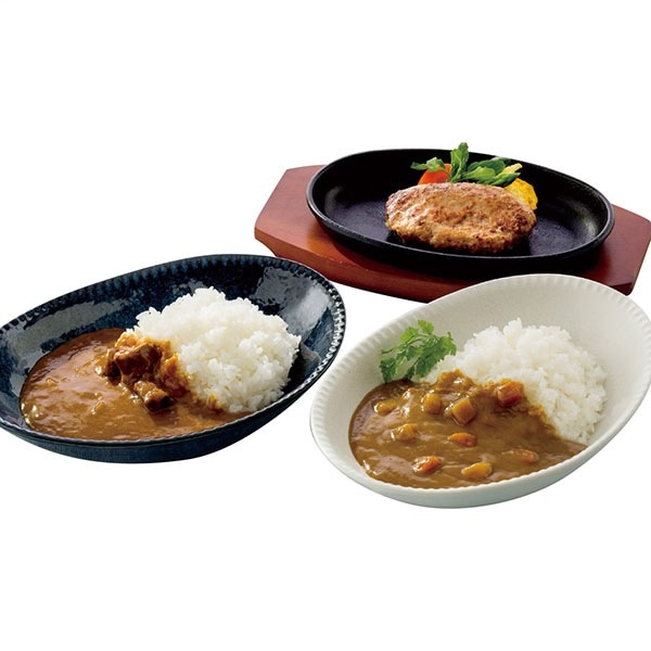 ●現品:焼ハンバーグ100g×8個・こだわりビーフカレー180g・こだわり野菜カレー180g・飛騨牛ビーフカレー190g・飛騨牛入りハンバーグカレー190g各1個・賞味期限/製造日より常温約210日・[日本製]・【乳成分・小麦】