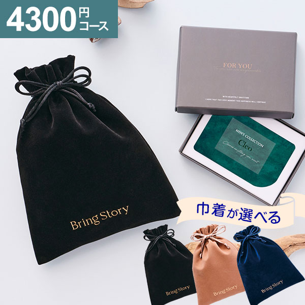 カードタイプの選べるギフトが巾着にラッピングされたスタイル。選んだあとは小物入れにお使いいただけます。