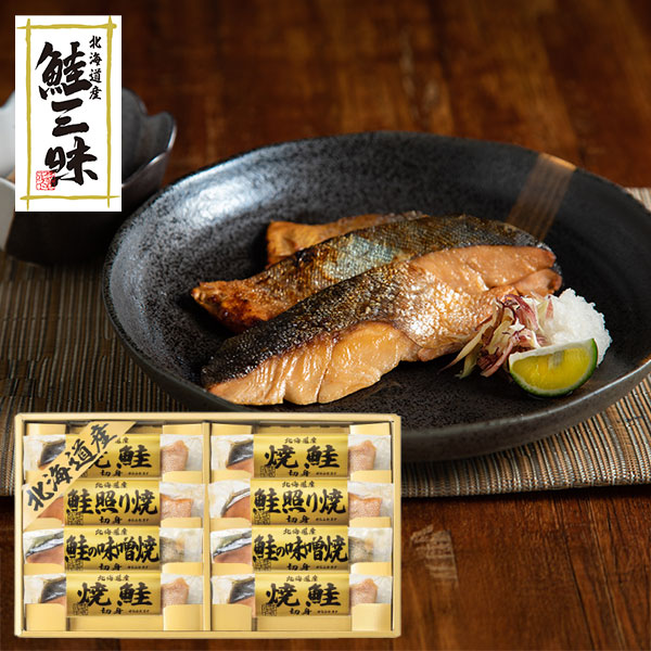 ●ハコ約38.5×22.5×4.5cm●重量=約650g●焼鮭切身30g×4、鮭照り焼切身30g×2、鮭の味噌焼切身30g×2【製造より365日】【小麦】