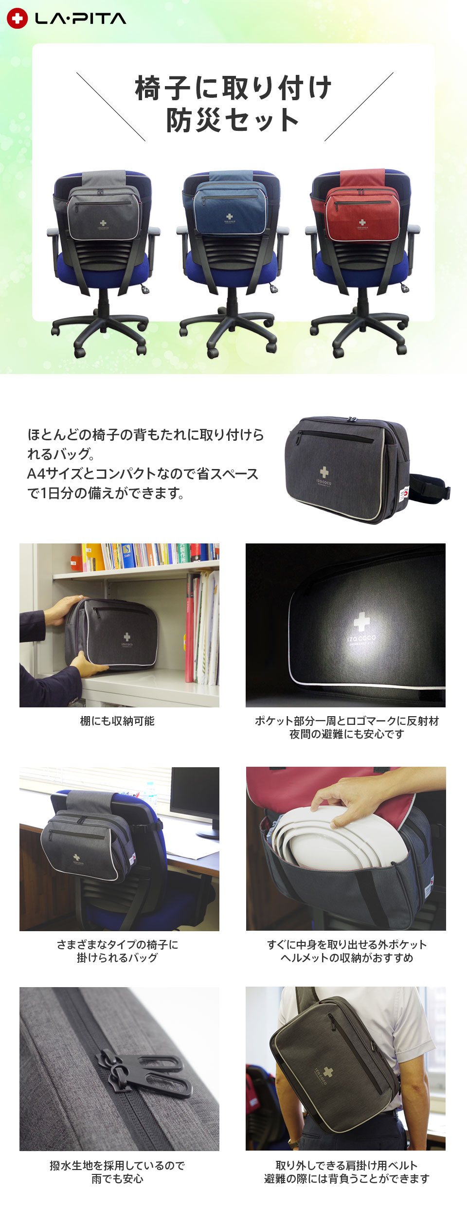 【直送】LA・PITA ラ・ピタ 椅子掛け用防災セット ライトβ 12点セット グレー 【送料無料】 【約10営業日】