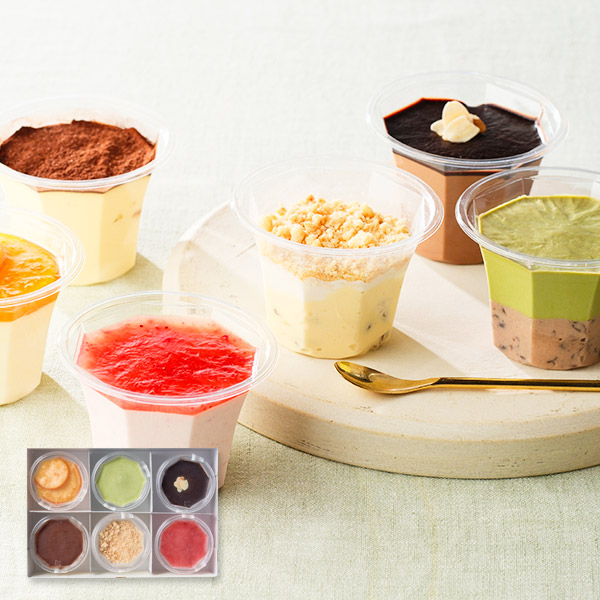●現品:オレンジムース・チョコムース・ティラミス・抹茶と小豆・苺ムース・チーズケーキ×各1個(計6個)
