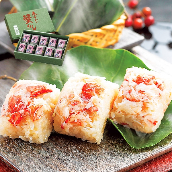 もち米とうるち米を程よくブレンドし、蟹のほぐし身を混ぜ込み炊きあげた蟹めしに本ずわいがにを盛付けました。本ずわいがにの香りと食感を十分にお楽しみいただけます。