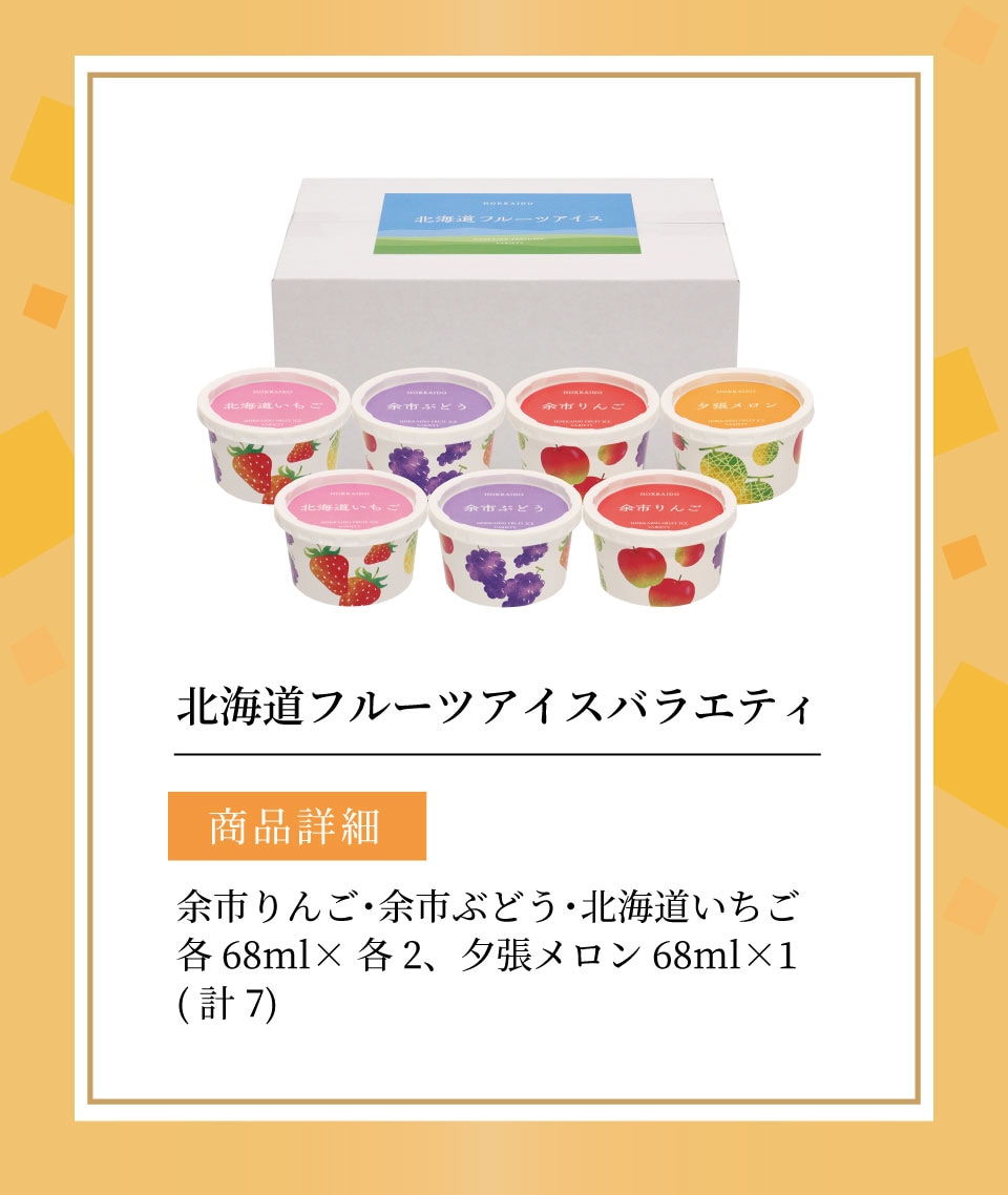 ●現品:余市りんご・余市ぶどう・北海道いちご各68ml×各2、夕張メロン68ml×1(計7)