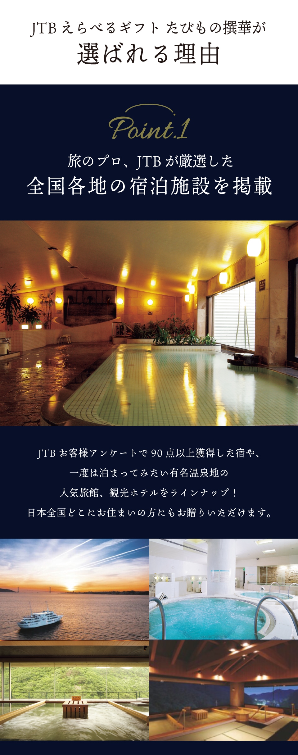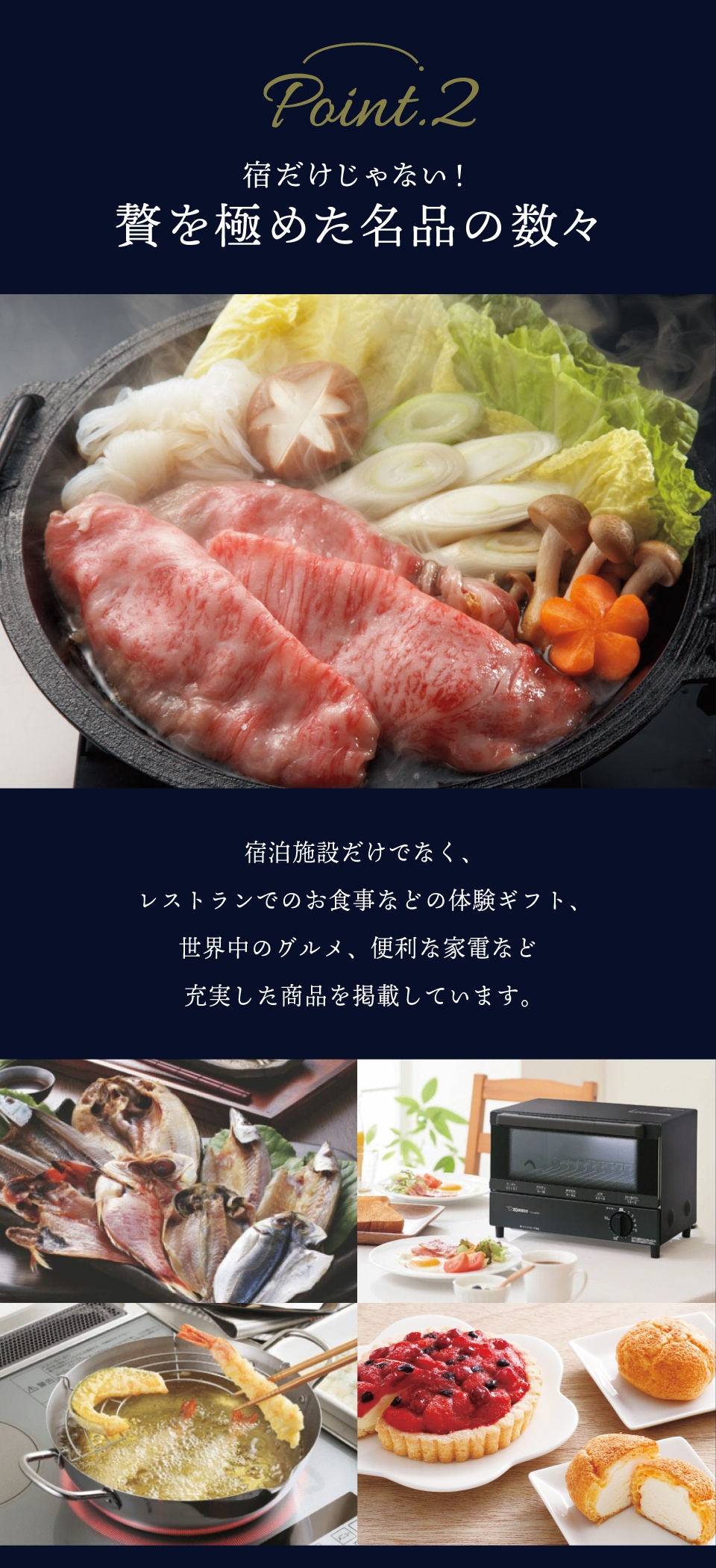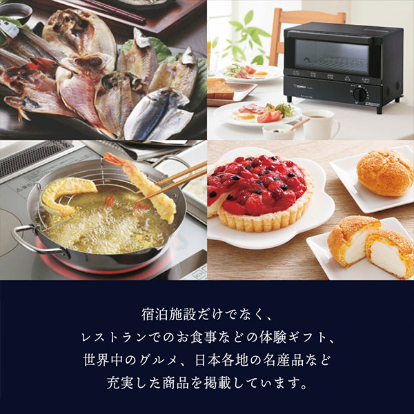 憧れの旅館・ホテルの宿泊プランのほか、日本各地のグルメや世界の銘品も満載。