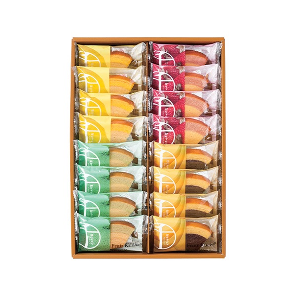 一層一層丁寧に焼き上げた生地と、果汁を加えて仕上げた生地の2つの味が絶妙なハーモニーとなっております。しっとりとした口当たりにフルーツの程よい甘さが相まって、深い味わいが広がります。ティータイムのお供にご堪能ください。