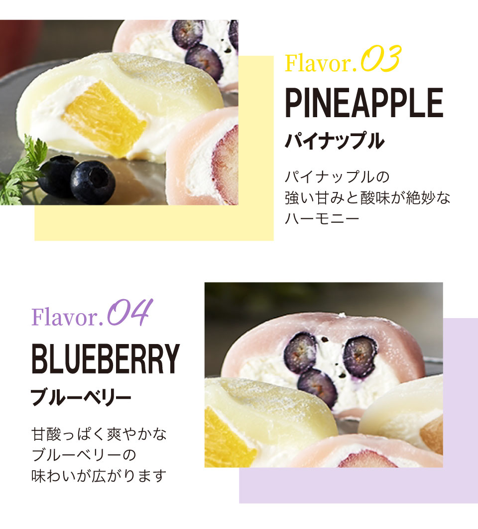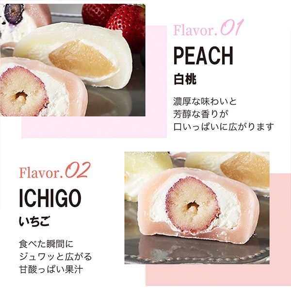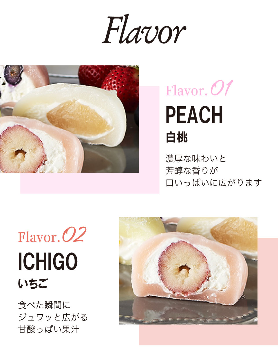 優しい甘みのクリームともちもちのお餅で銀座千疋屋自慢の果物を包みました。とろける食感をお楽しみください。