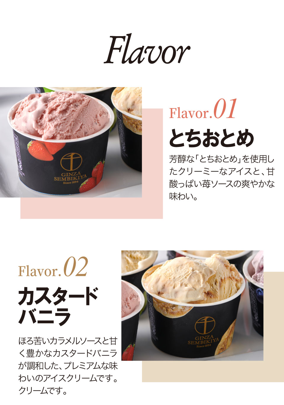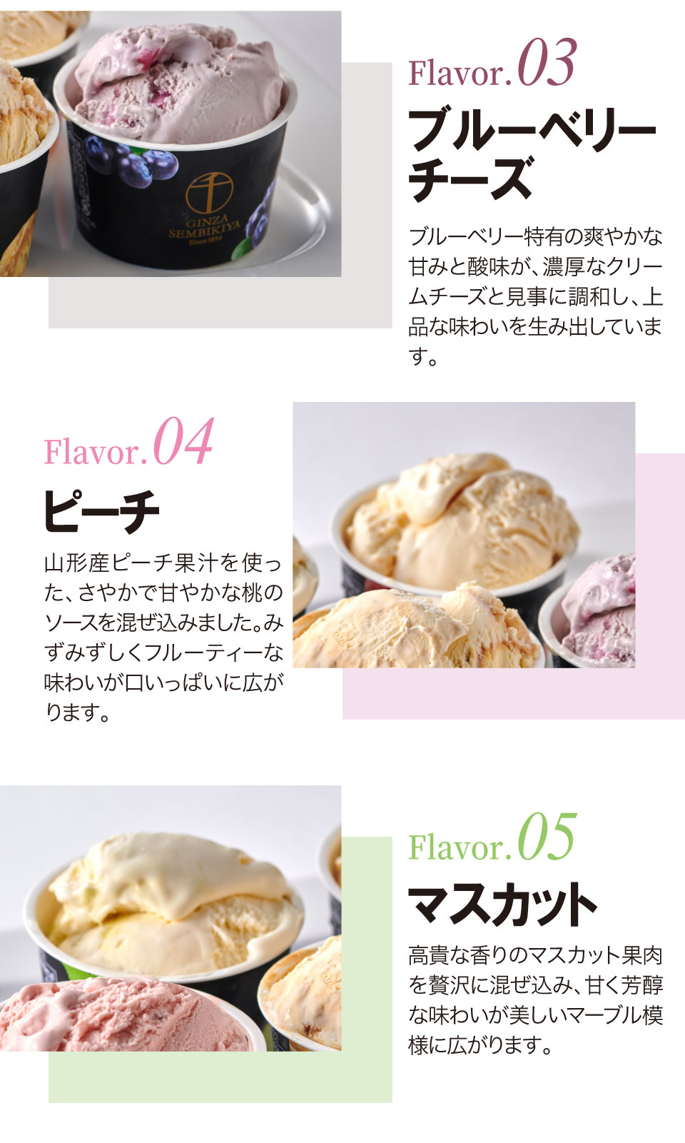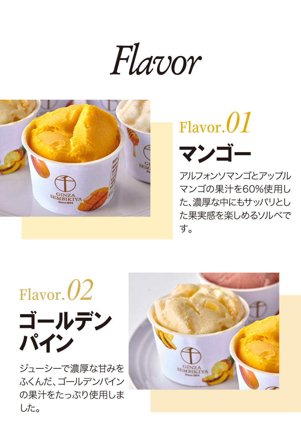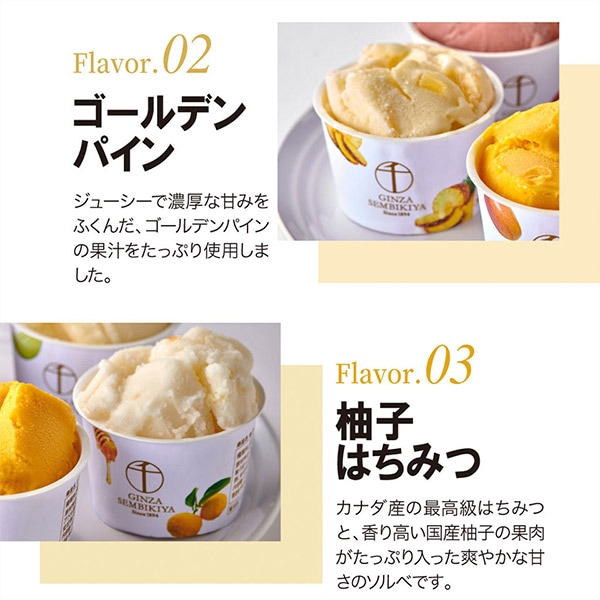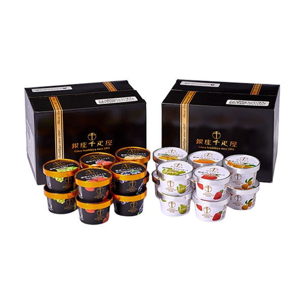 フルーツの老舗、銀座千疋屋が厳選した素材を使用して作った、濃厚でなめらかなプレミアムアイスクリームとジューシーでフレッシュなプレミアムソルベ詰合せ