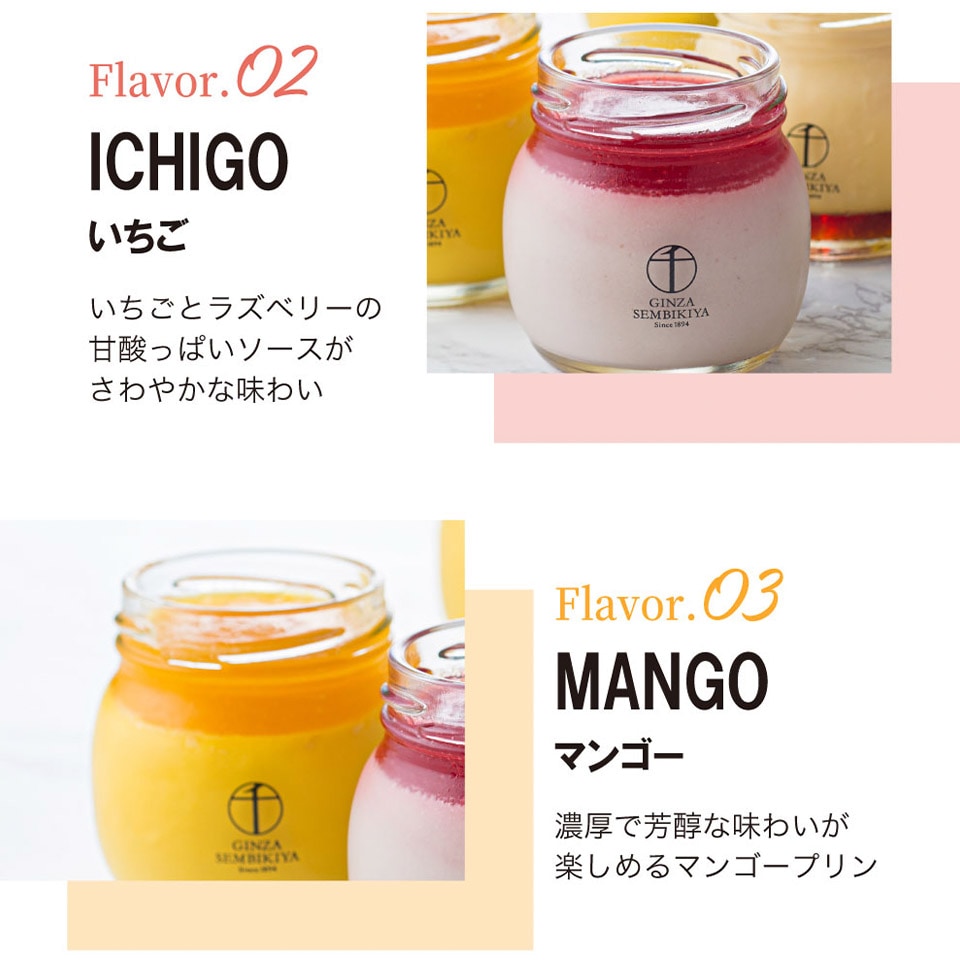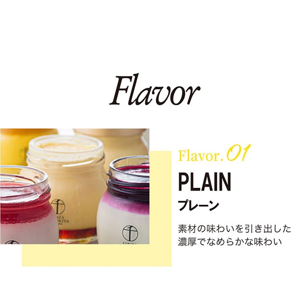 それぞれの素材の個性を考えたフルーツソースをふんだんに使用。風味と味わい、なめらかな食感も楽しんでいただけるプリンです。