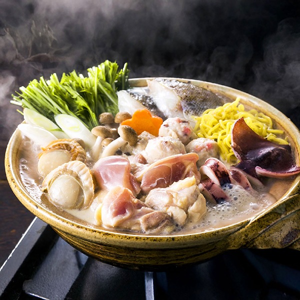 北海道産の「鶏もも肉」を主役に「真いか」や「帆立」、「助宗鱈」等の海鮮素材を詰め合わせました。鶏白湯鍋のたれは各素材とよく絡み、鶏の旨味たっぷりです。お好みで白菜や豆腐、もやし、ネギなどと一緒に煮込んでからお楽しみください。