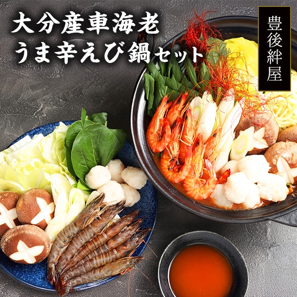 【直送】 大分 「豊後絆屋」 大分産車海老うま辛えび鍋セット 【送料無料】 【約5〜7営業日】