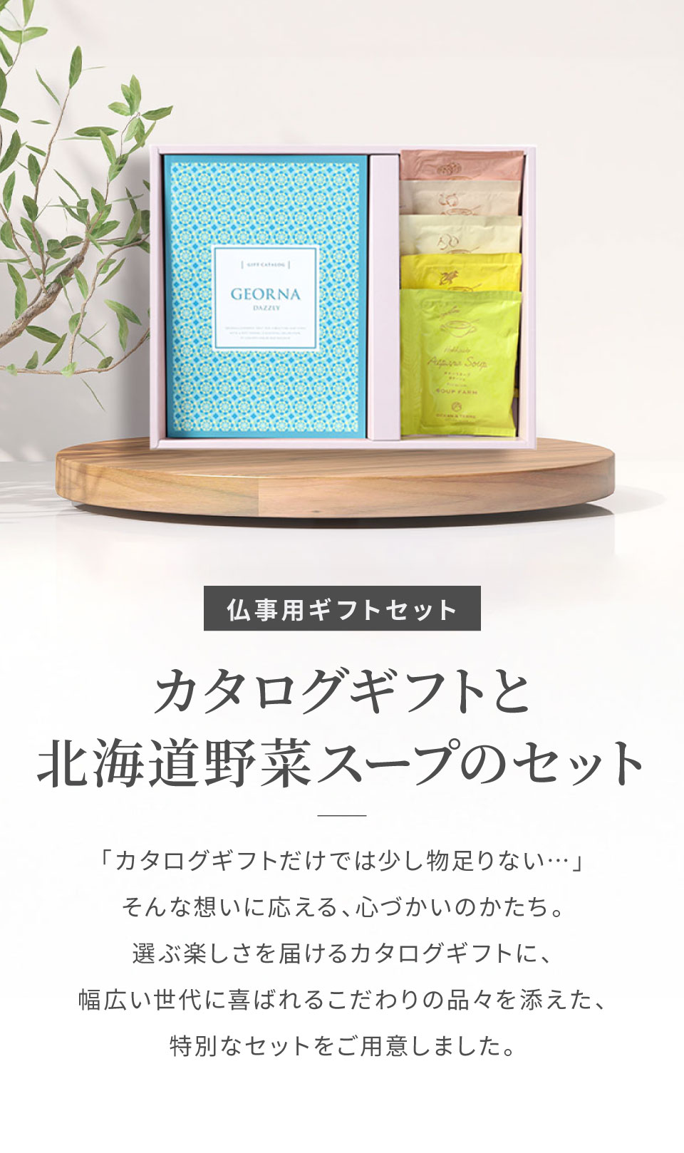 【直送】【仏事専用】カタログギフトと北海道野菜スープセット ダズリーコース カタログギフトプラス 【送料無料】