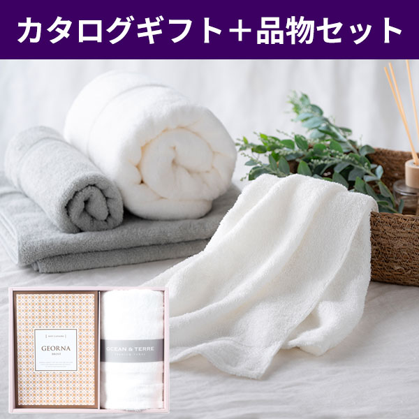 【直送】【仏事専用】カタログギフトとフェイスタオル(ホワイト)セット テトラコース カタログギフトプラス 【送料無料】