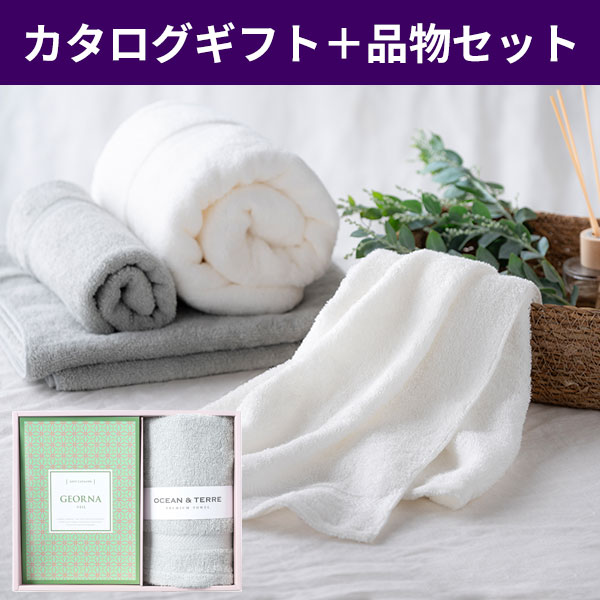 【直送】【仏事専用】カタログギフトとフェイスタオル(ホワイト)セット テトラコース カタログギフトプラス 【送料無料】