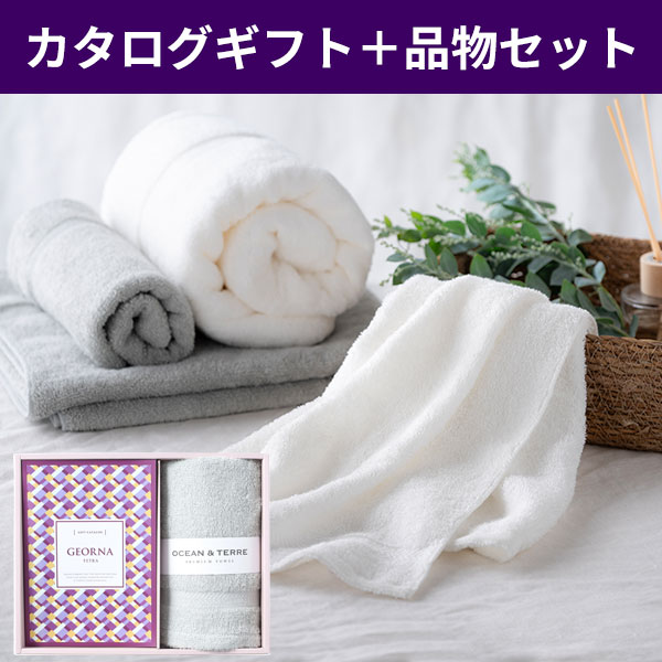 【直送】【仏事専用】カタログギフトとフェイスタオル(ホワイト)セット テトラコース カタログギフトプラス 【送料無料】