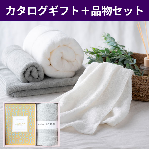 【直送】【仏事専用】カタログギフトとフェイスタオル(ホワイト)セット ブルームコース カタログギフトプラス 【送料無料】