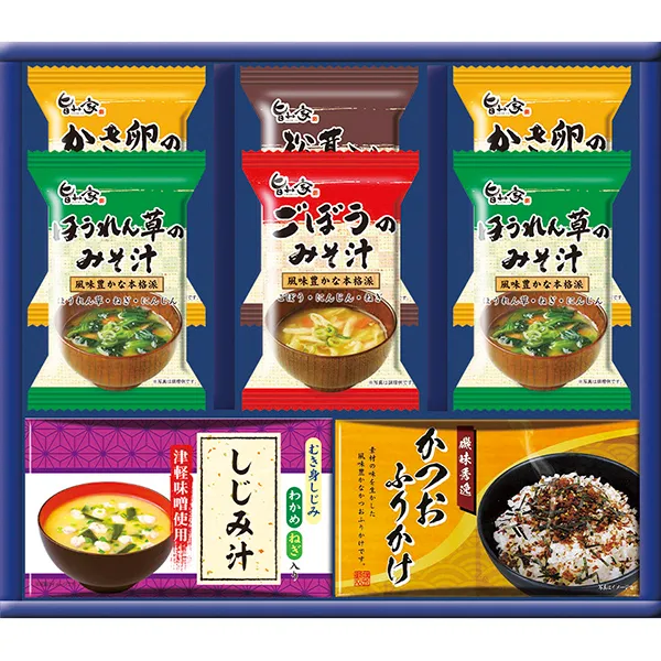 ●現品:しじみ汁(4食入)・かつおふりかけ(3食入)・フリーズドライ(かき卵のみそ汁×2・ほうれん草のみそ汁×2・ごぼうのみそ汁・松茸入りお吸いもの) 【卵・乳成分・小麦】【賞味期限:メーカー製造より約常温450日間】【JPN】