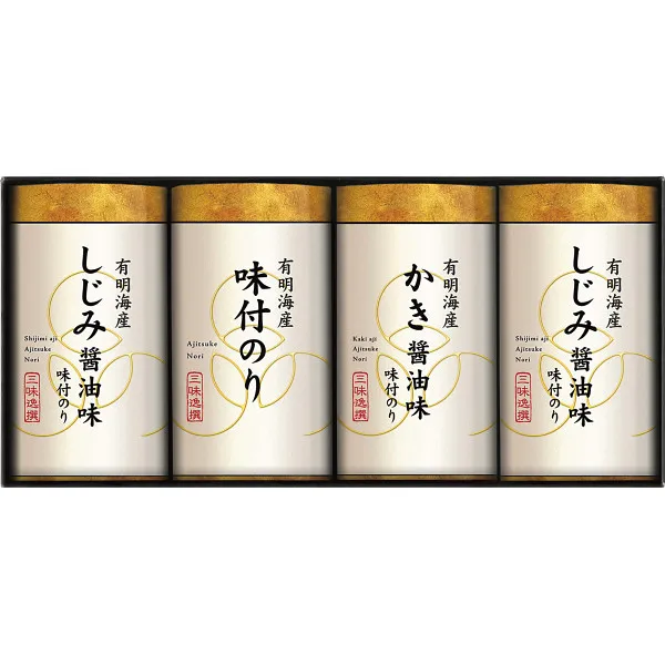 有明海産の風味豊かな味付海苔としじみ醤油味、かき醤油で仕上げた味付海苔の3種類の味わいを楽しめるバラエティギフトです。